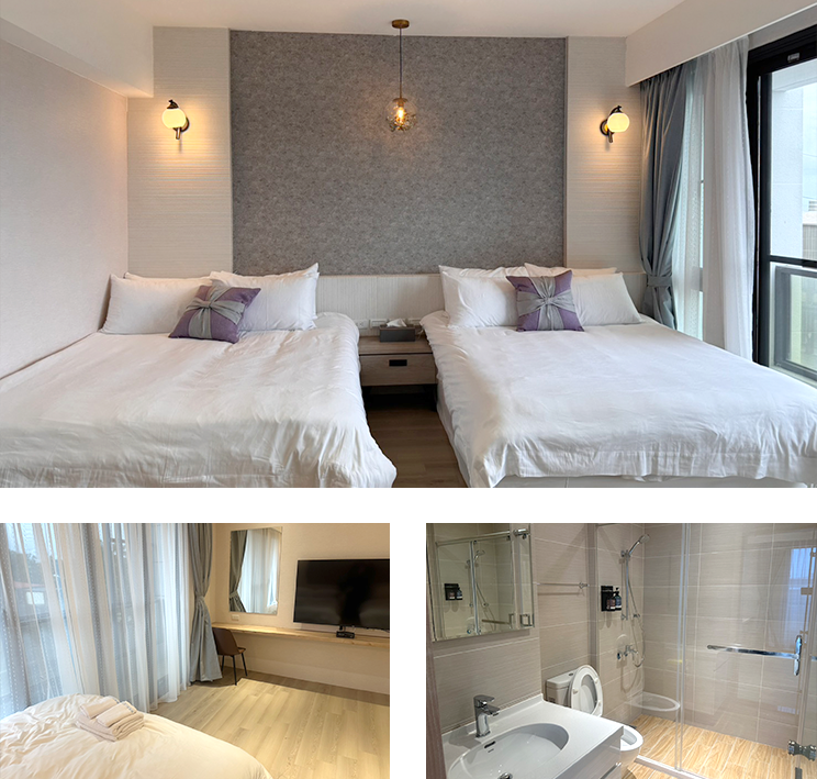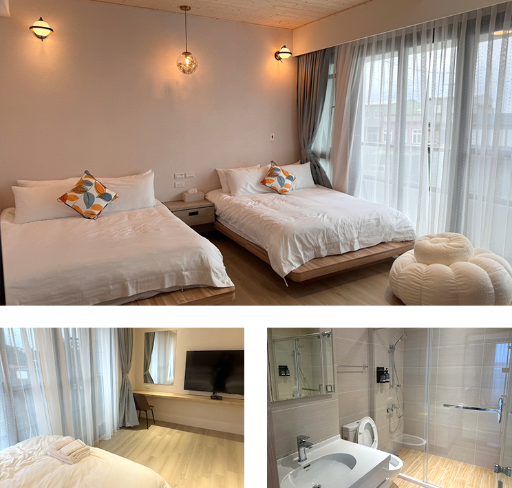 我們提供溫馨雙人房、寬敞四人房,以及適合親子入住的親子房,讓每位旅人都能找到最適合的空間。每間房都精心配備高品質寢具與現代化衛浴設施,確保您享受最放鬆、舒適的住宿體驗。不論是甜蜜旅行還是溫馨親子時光,都能在這裡找到家的溫暖!